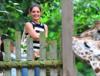 Cô con gái 6 tuổi thích thú trêu đùa các chú hươu cao cổ, trong khi bà mẹ mới  thỏa sức cười và chụp ảnh khi đi thăm sở thú Bronx, New York hôm 28/7. > ![]()  |